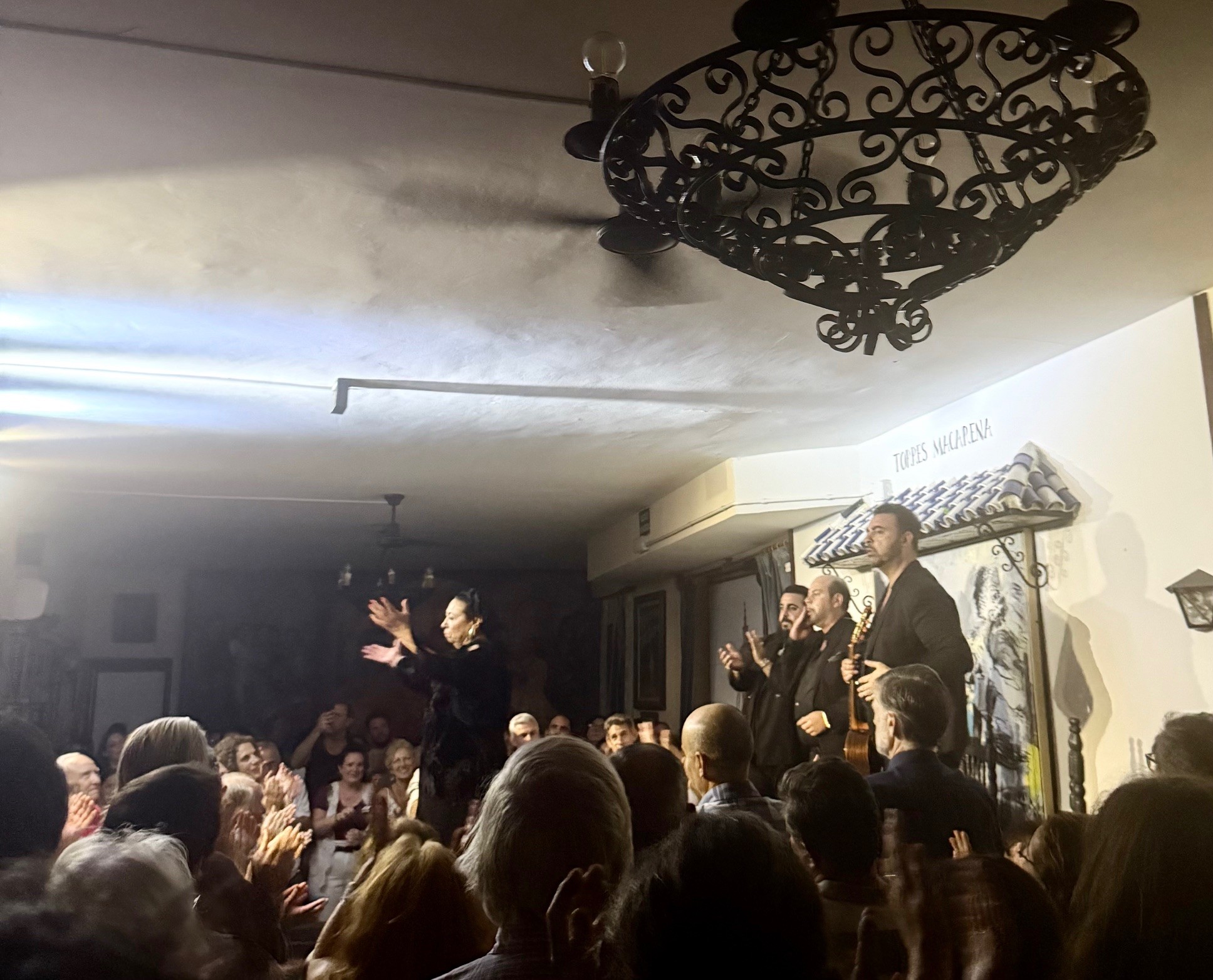 Una conversación con la gran bailaora de flamenco Concha Vargas en el camerino después de su actuación en el tablao Torres Macarena de Sevilla, donde se presentaba junto a su hijo. Habla allí sobre su baile y sobre el duende, sobre los gitanos. También aparecen brevemente su hijo Curro Vargas y una amiga, Emilia. Grabado en Sevilla, en octubre de 2025.